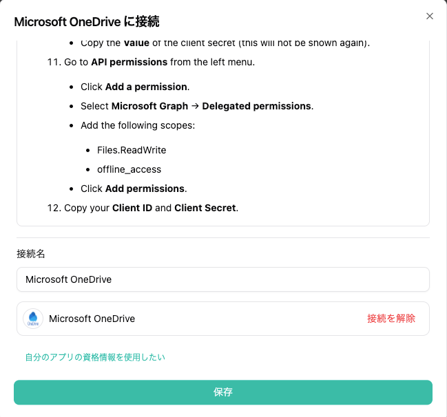 Microsoft OneDriveの接続方法