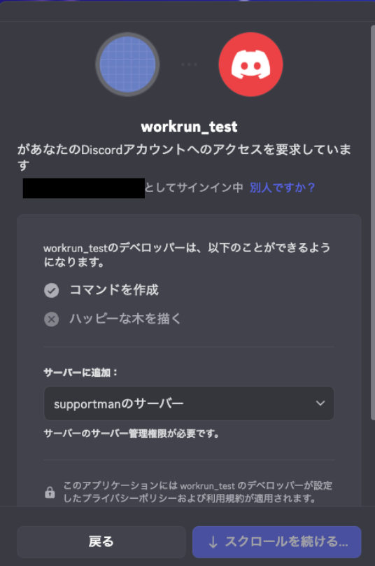 - 設定を行った後でInstall Linkのページを開いてbotを自分のサーバー等にインストールします。