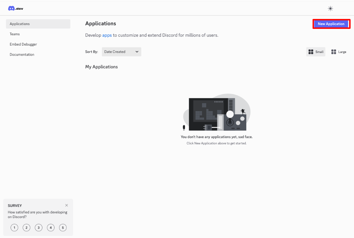 - 赤枠で囲ったページ(https://discord.com/developers/applications)に入ります。