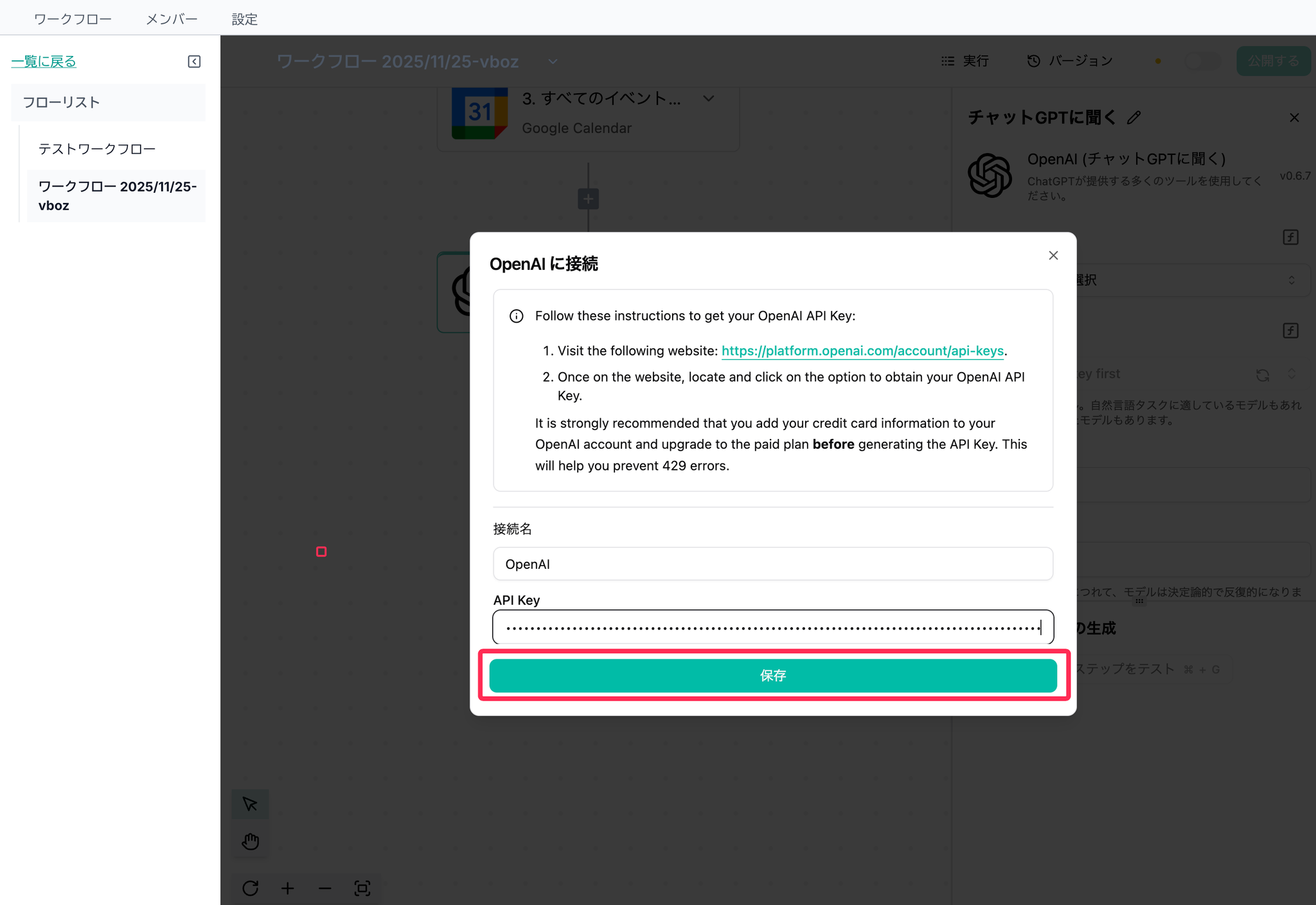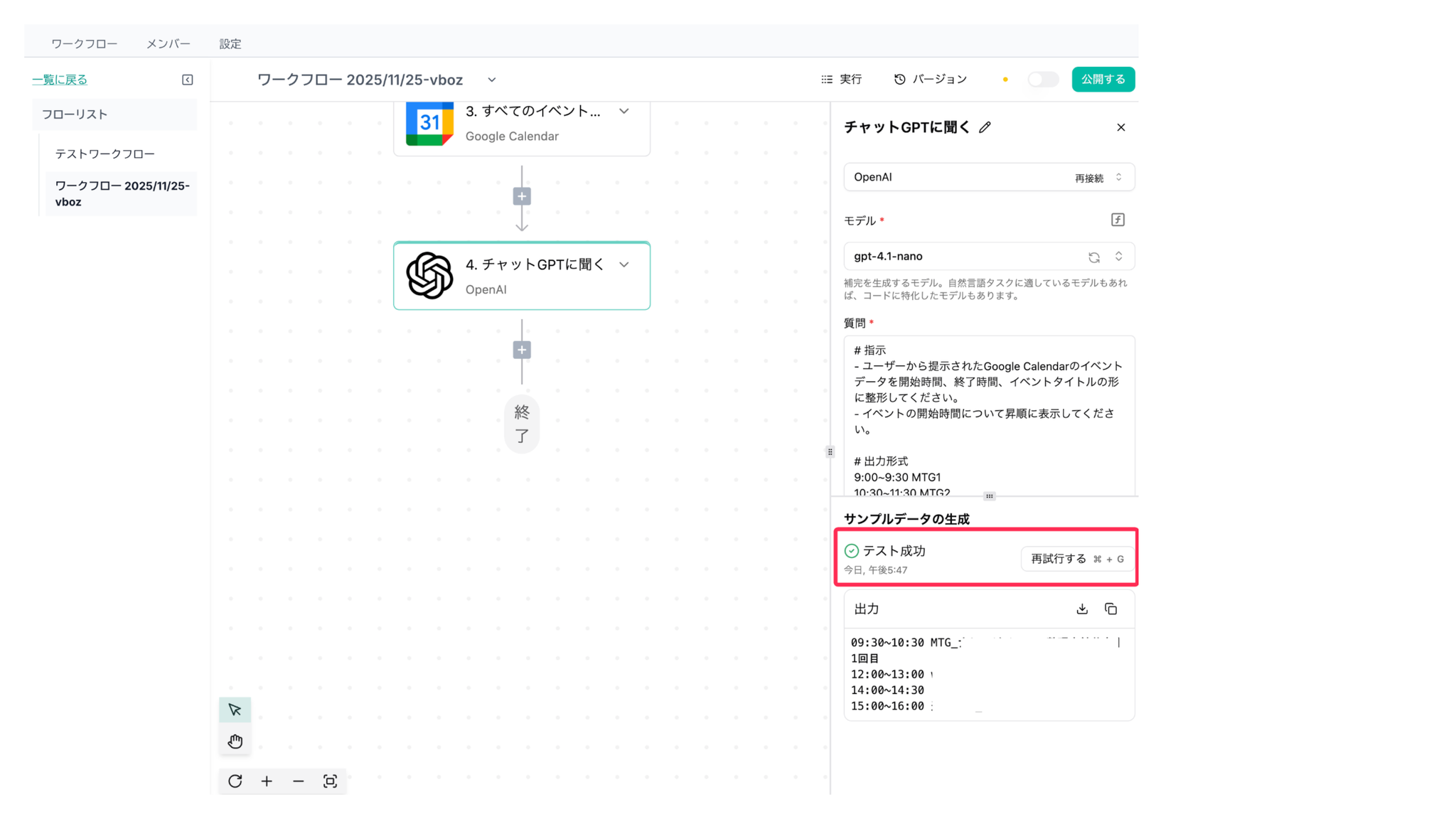 - OpenAIのChatGPTで3で取得したGoogle Calendarのデータを見やすく整形します。