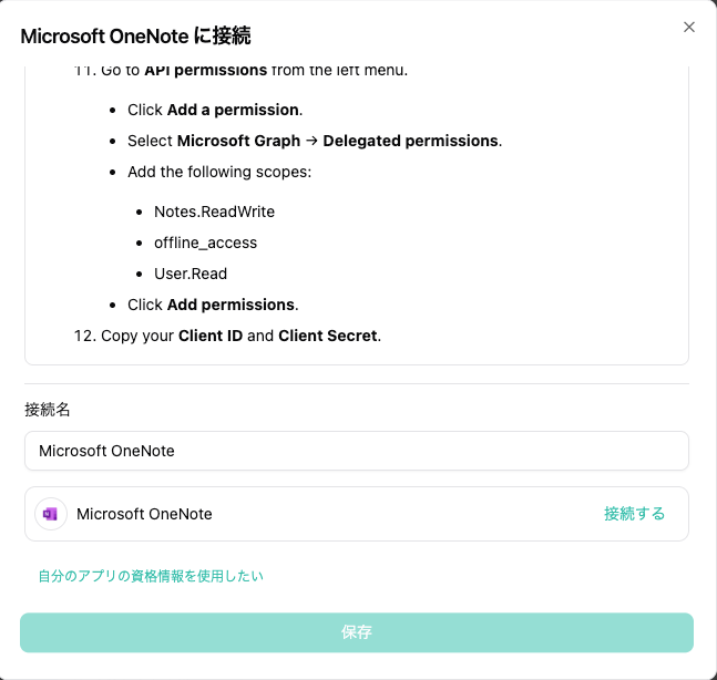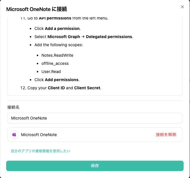 4. 「保存」を押して接続名が設定されていることを確認する。