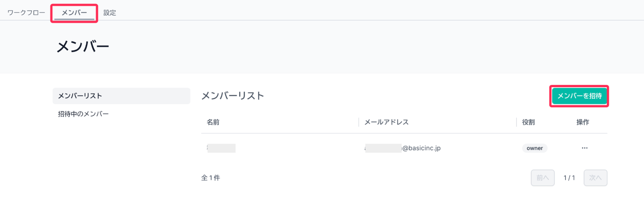 - 「メンバー」のタブを開き「メンバーの追加」を押してメールアドレスを入力するとメンバーに招待メールを送ることができます。