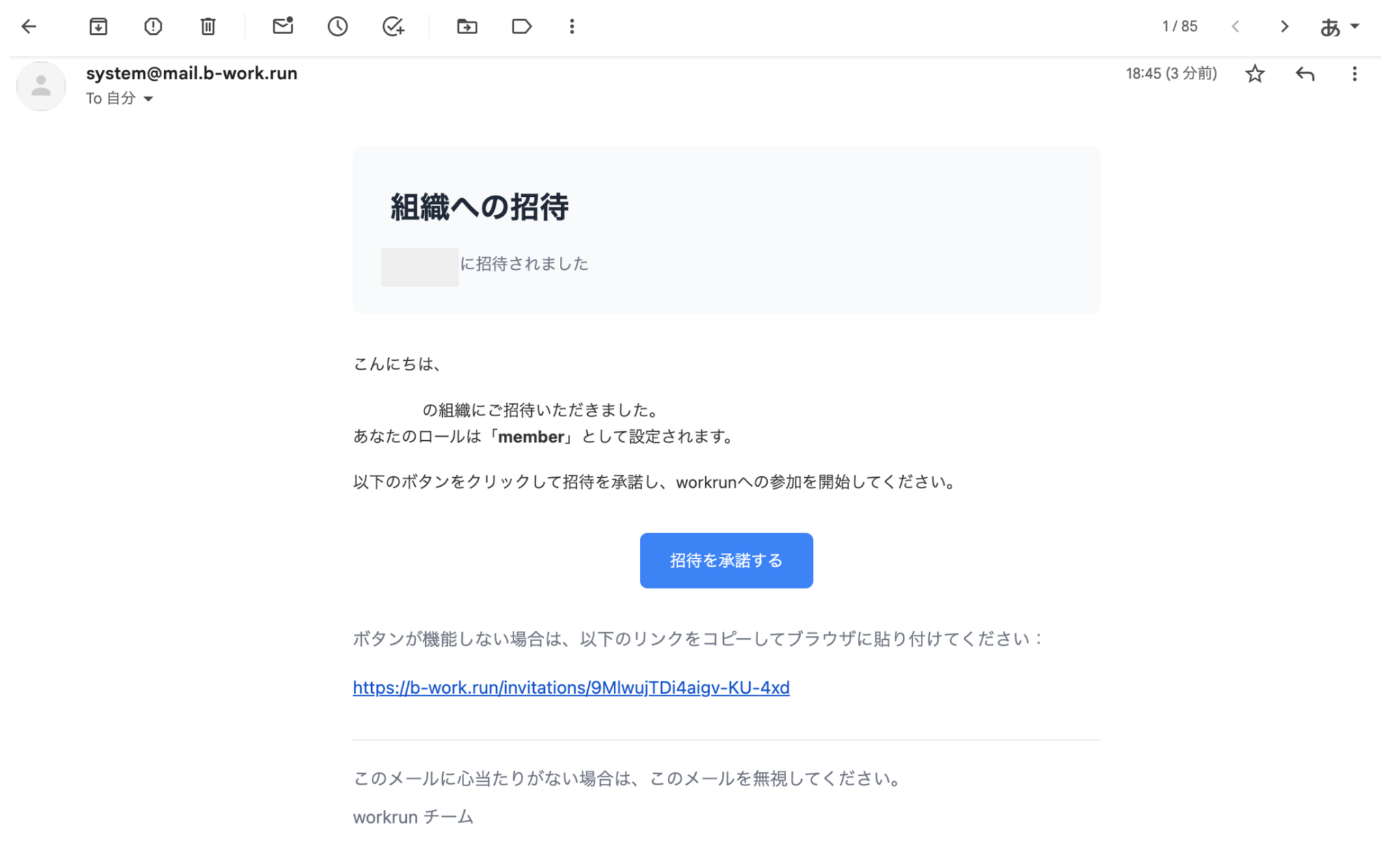 - 招待されたメンバーは招待メールが届くので「招待を承諾する」を押してください。
