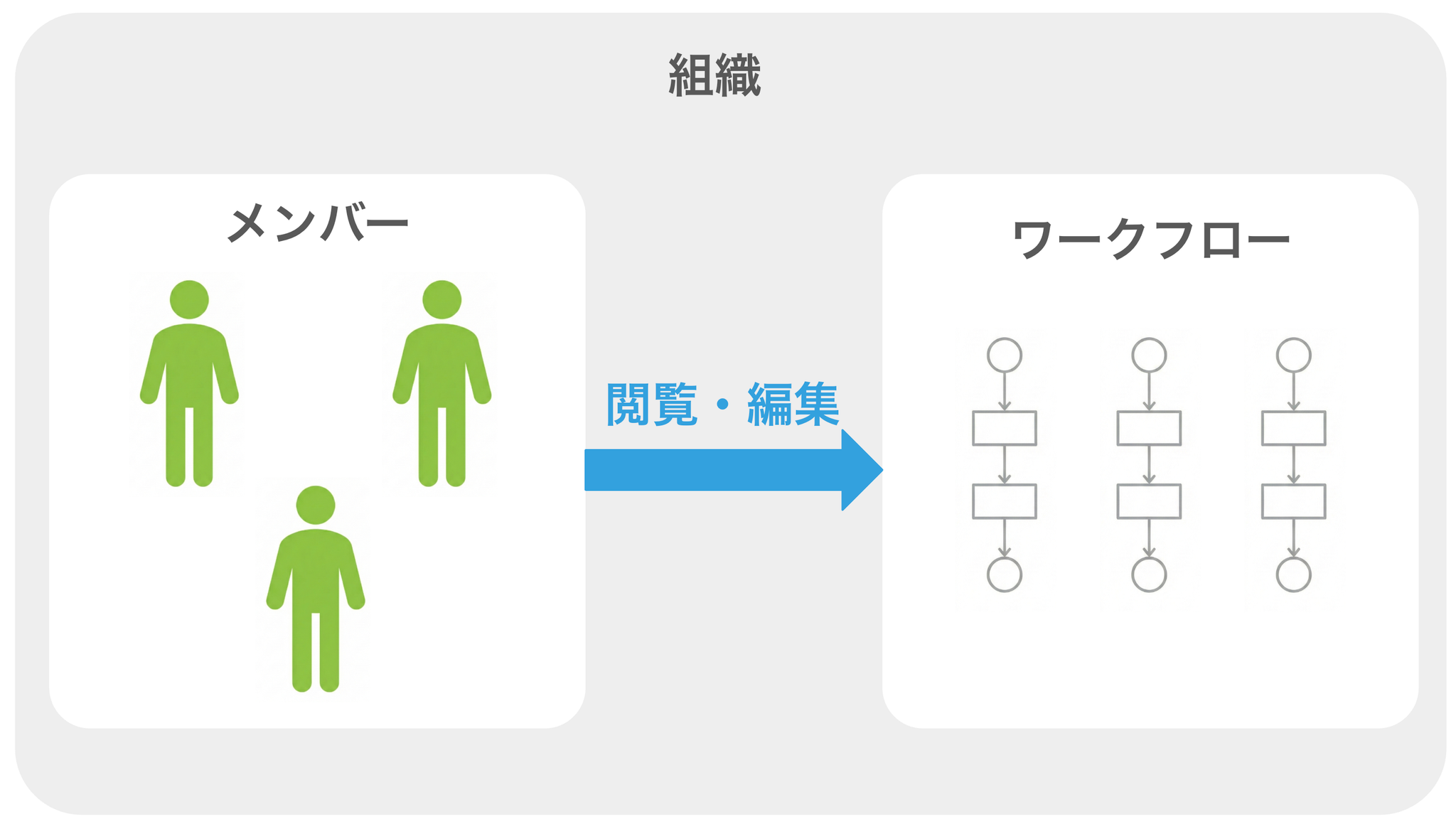 - 組織に招待されたメンバーはその組織に属するすべてのワークフローを閲覧・変数することができます