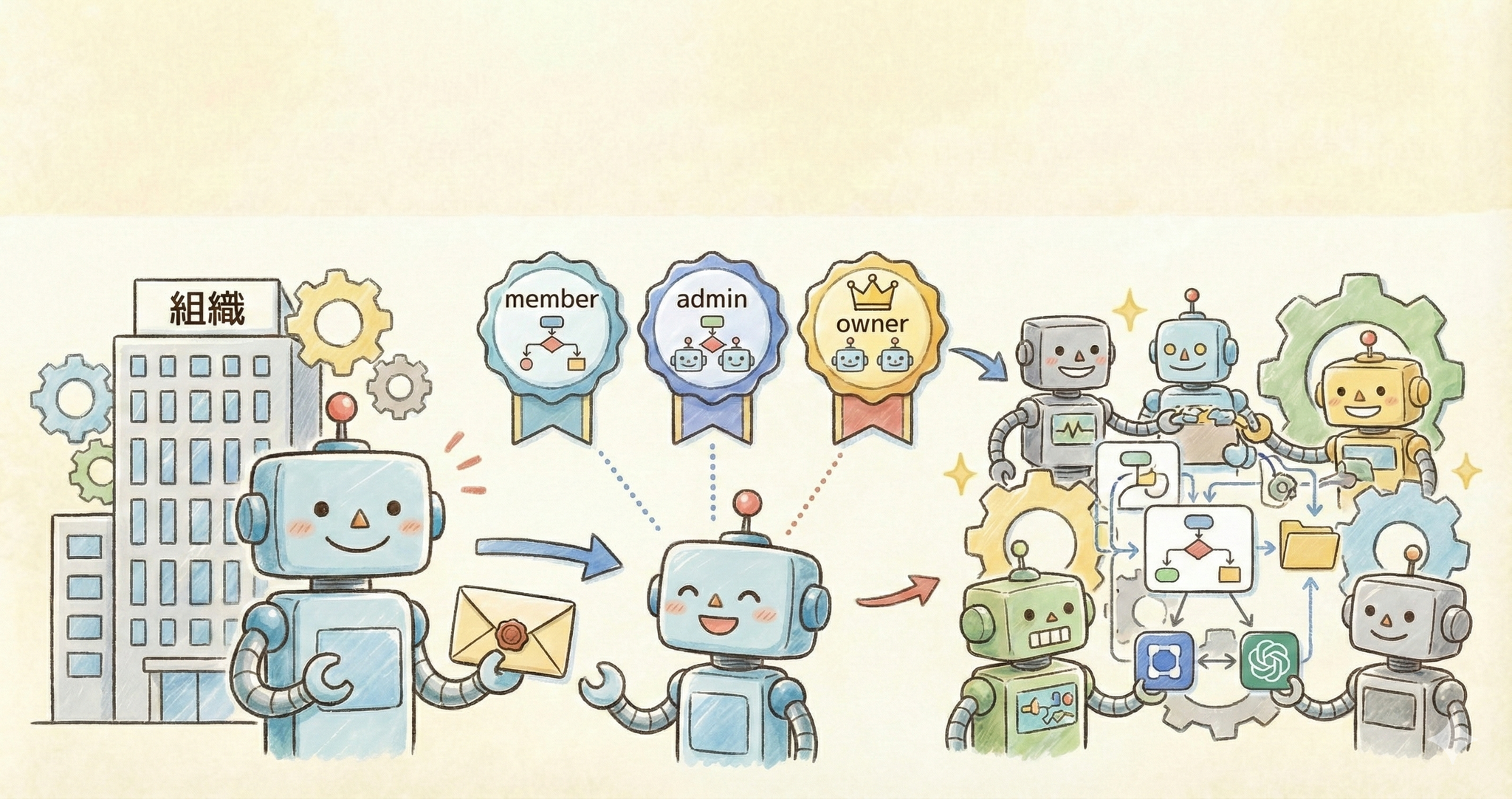 - 組織内での役割と操作範囲は以下の通りです。