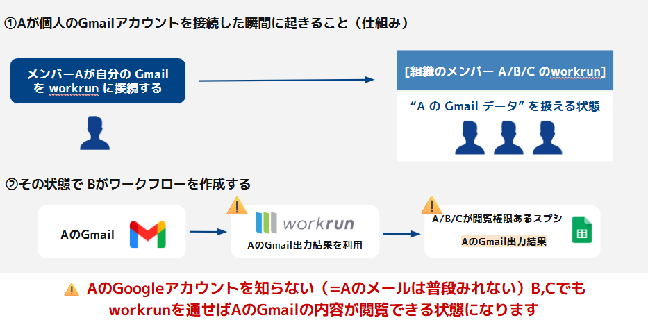 個人Googleアカウントとスプレッドシートを接続した場合の問題