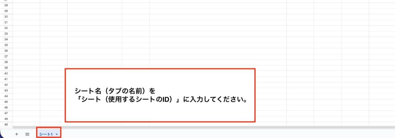 - シート名をworkrunの「シート(使用するシートのID)」に貼り付ける。