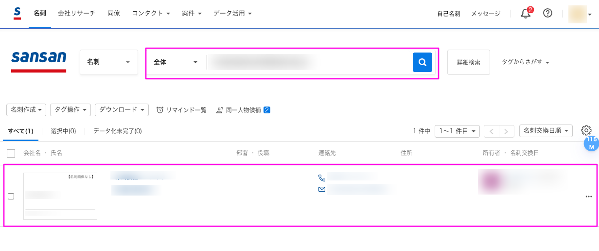 Step 8:(データが存在しない場合)SanSanにて名刺データを登録します
