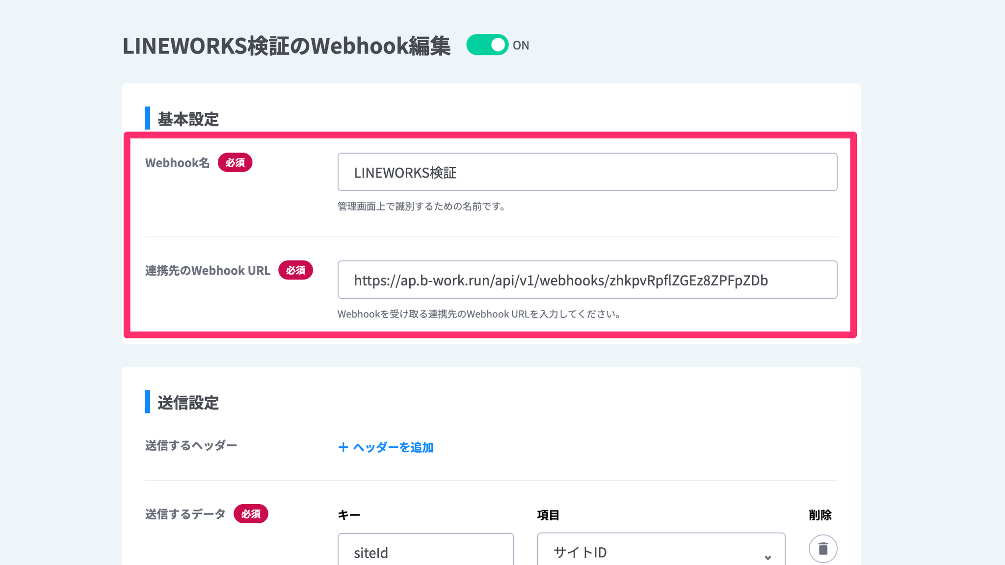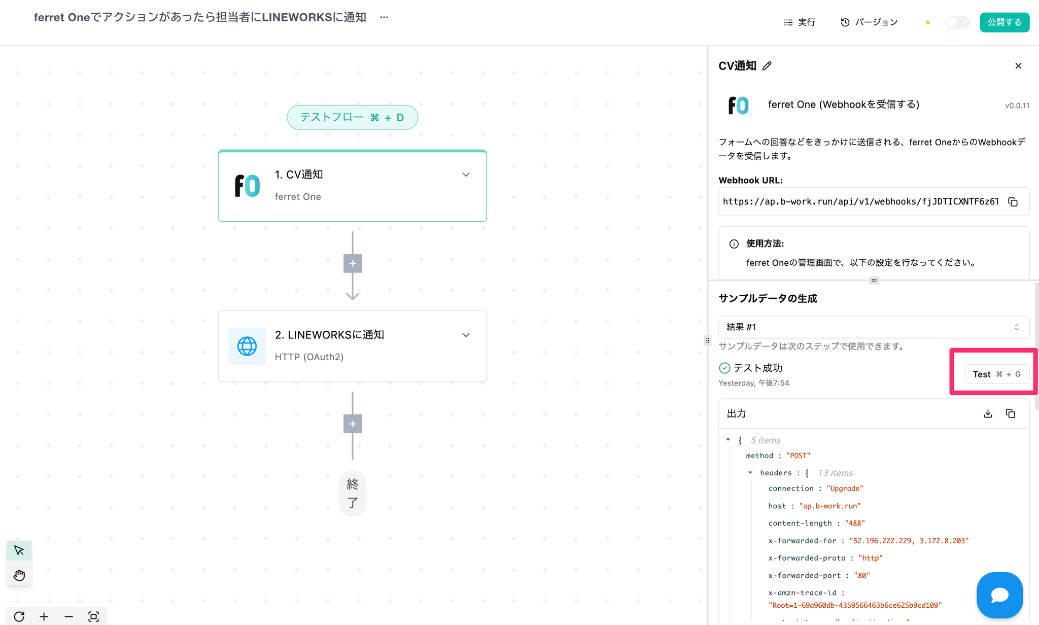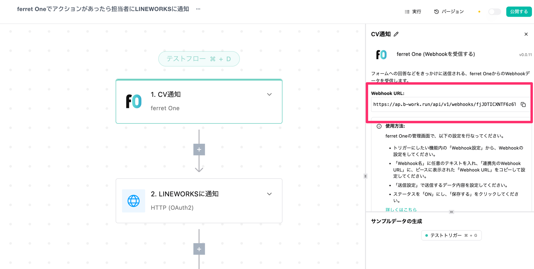 Webhookの設定方法:ferret One 「Webhookを受信する」
