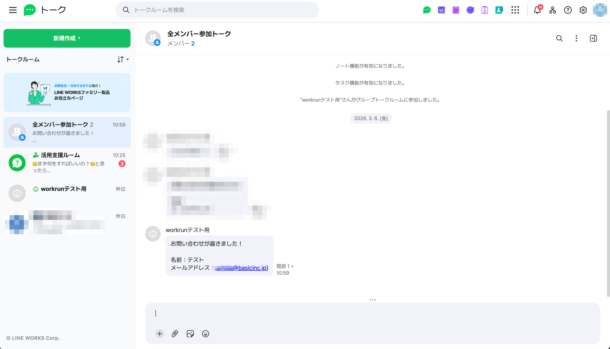- https://talk.worksmobile.com/#/ にアクセスする。