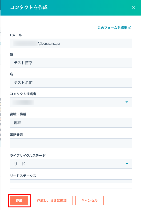Step 5:HubSpot でテストコンタクトを作成する