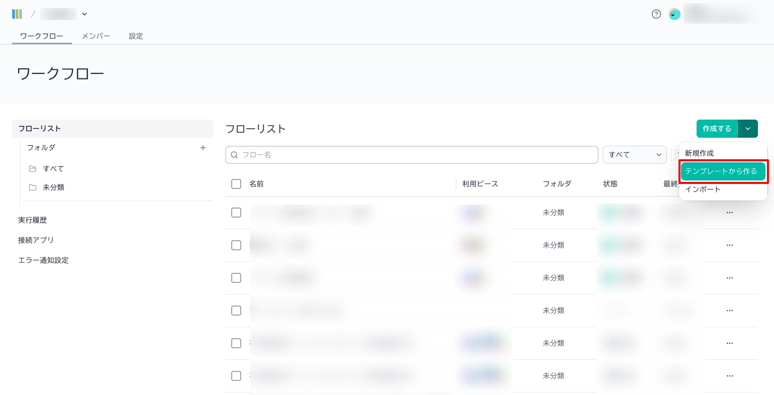 Step 1:「テンプレートから作る」をクリックする
