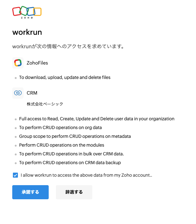 - Zoho CRM APIへ任意のHTTPメソッドで認証済みリクエストを送信します。