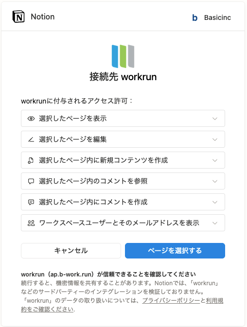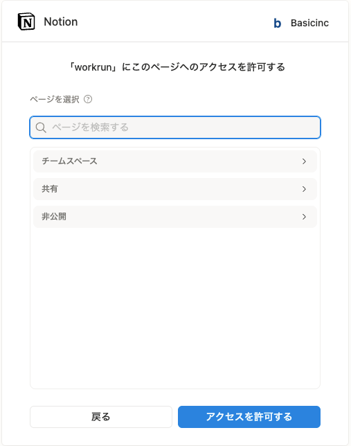 連携したいNotionページを選択して、アクセスを許可します。