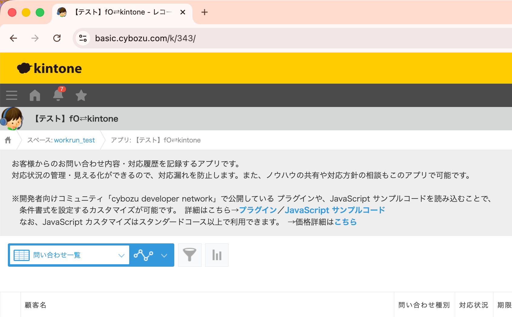 - kintoneで、指定したアプリにレコードを1件登録します。