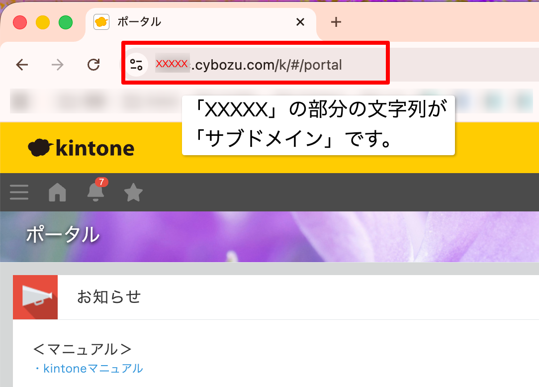 - 「サブドメイン」はkintoneのURLから取得できます。