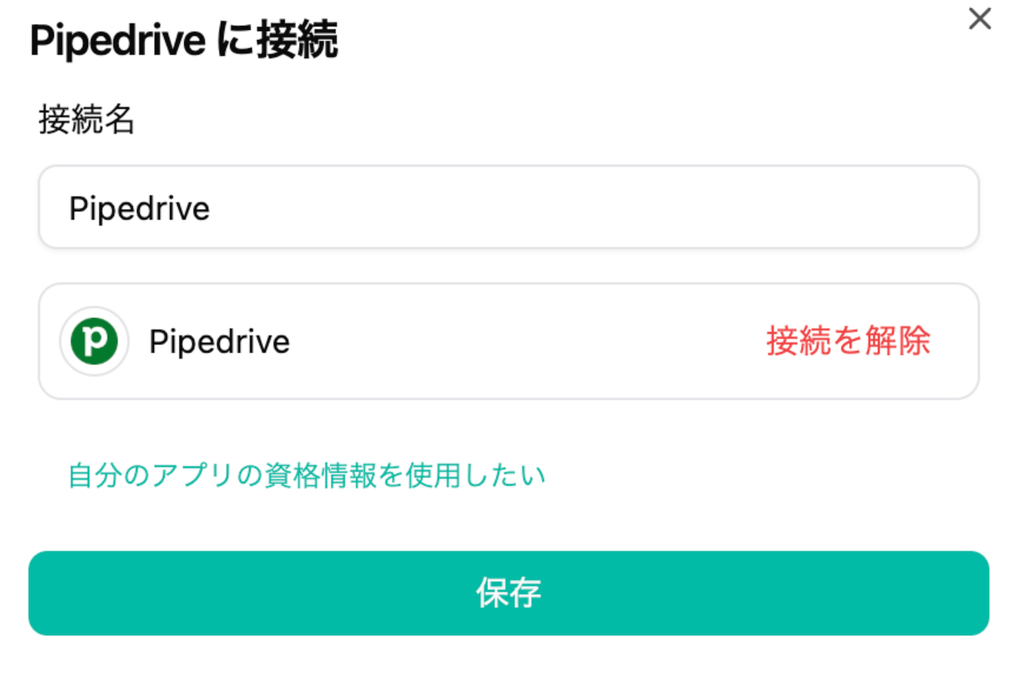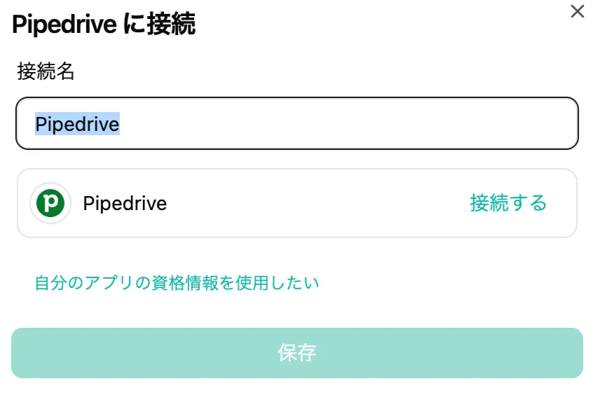 このピースでできることPiepeDriveの接続方法1. 接続を作成2. 接続設定3. Pipedriveにログインする4. 「保存」を押して接続名が設定されていることを確認する。ピースの設定項目1. 氏名(任意)2. 連絡先・関連ID(任意)3. 表示範囲・マーケ同意(任意)