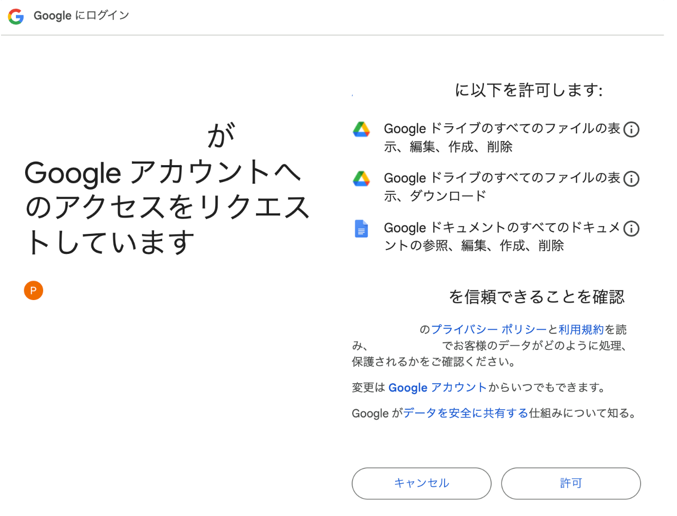 - アプリに許可を行います。