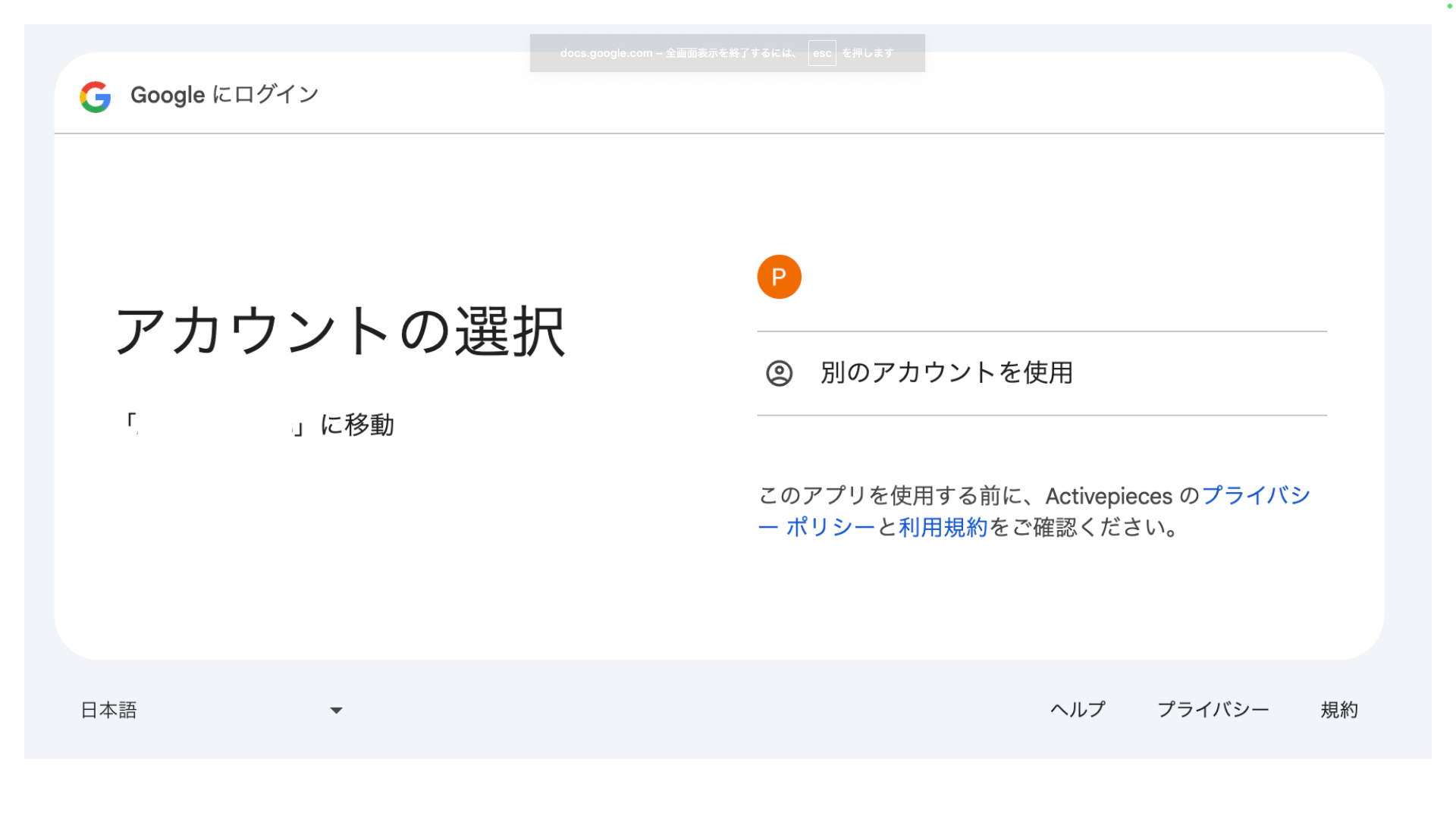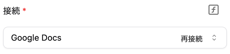 このピースでできることGoogle Docsの接続方法1. 接続を作成2. 接続設定3. 接続するGoogleアカウントを選び、許可を行います4. 「保存」を押して接続名が設定されていることを確認しますピースの設定項目1. ドキュメント名(必須)2. フォルダID(任意)3. 見つからない場合、新しいドキュメントを作成しますか?(任意)4. 新規作成時の本文(新規作成する場合は必須)5. 失敗時に続ける(任意)6.失敗時に再試行(任意)
